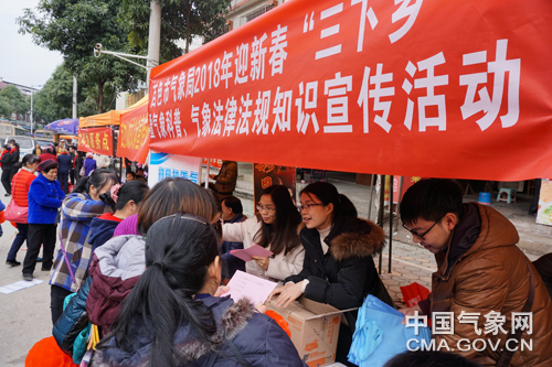 百色市氣象局在右江區(qū)陽圩鎮(zhèn)廣場開展氣象科普宣傳活動。劉中花 攝影 中國氣象報通訊員陳詠梅報道 2月1日,廣西壯族自治區(qū)百色市氣象局以參加“百色市做新時代‘紅色文藝輕騎兵’主題活動暨2018年迎新春‘三下鄉(xiāng)’集中活動”為契機,在右江區(qū)陽圩鎮(zhèn)廣場宣傳氣象知識。 活動中,氣象工作人員布置了宣傳展板,設立和氣象服務咨詢臺,發(fā)放《氣象災害防護指引》《氣象防災減災系列》《氣象災害防御條例》等宣傳資料,采取“看得見、聽得懂、記得牢”等群眾喜聞樂見的宣傳方式,有針對性地把氣象科普知識、氣象法律法規(guī)知識、防雷科普知識傳遞給廣大群眾;顒舆設置了氣象知識有獎競答環(huán)節(jié),吸引廣大群眾積極參與,學習防災減災知識,提高防災減災意識。 |