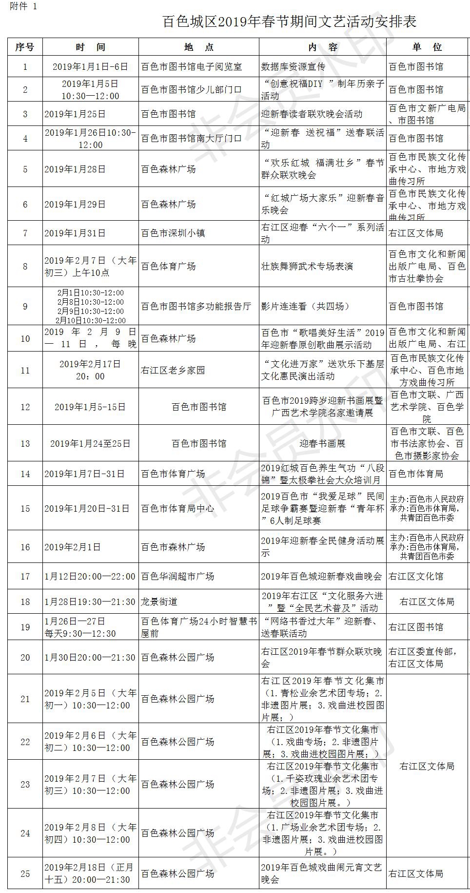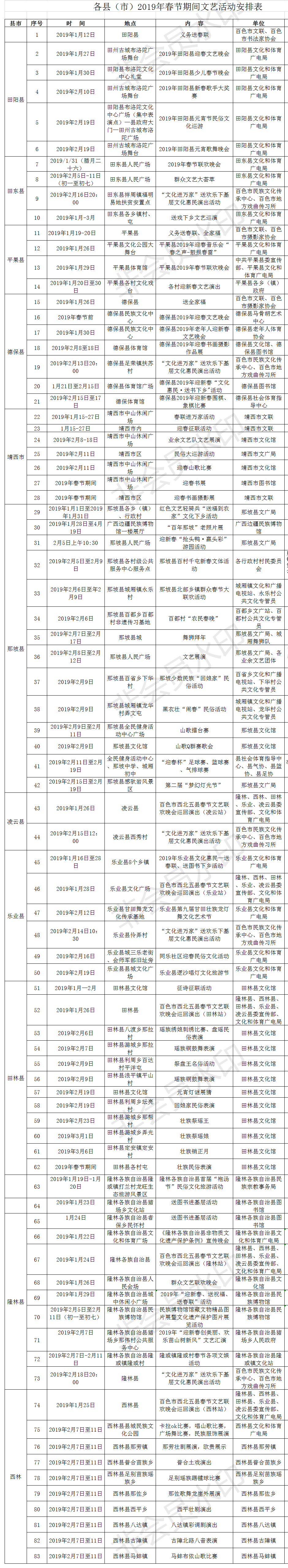 百色城區(qū)及各縣(市)2019年春節(jié)期間文藝活動(dòng)安排表