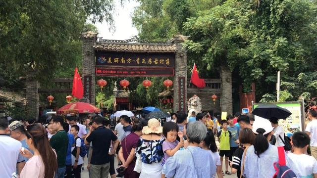 據(jù)介紹,10月3日上午10時(shí)許,美麗南方·青瓦房古村落前的停車場(chǎng)就停滿了車。中午11時(shí)~12時(shí)左右,記者看到景區(qū)道路上基本都是參觀人流;下午5時(shí),一些游樂(lè)體驗(yàn)區(qū)仍排著長(zhǎng)龍。截止到下午6時(shí),景區(qū)共接待游客近7000人。