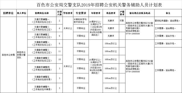 招聘監(jiān)督單位:百色市公安局政治部(0776—2833133)