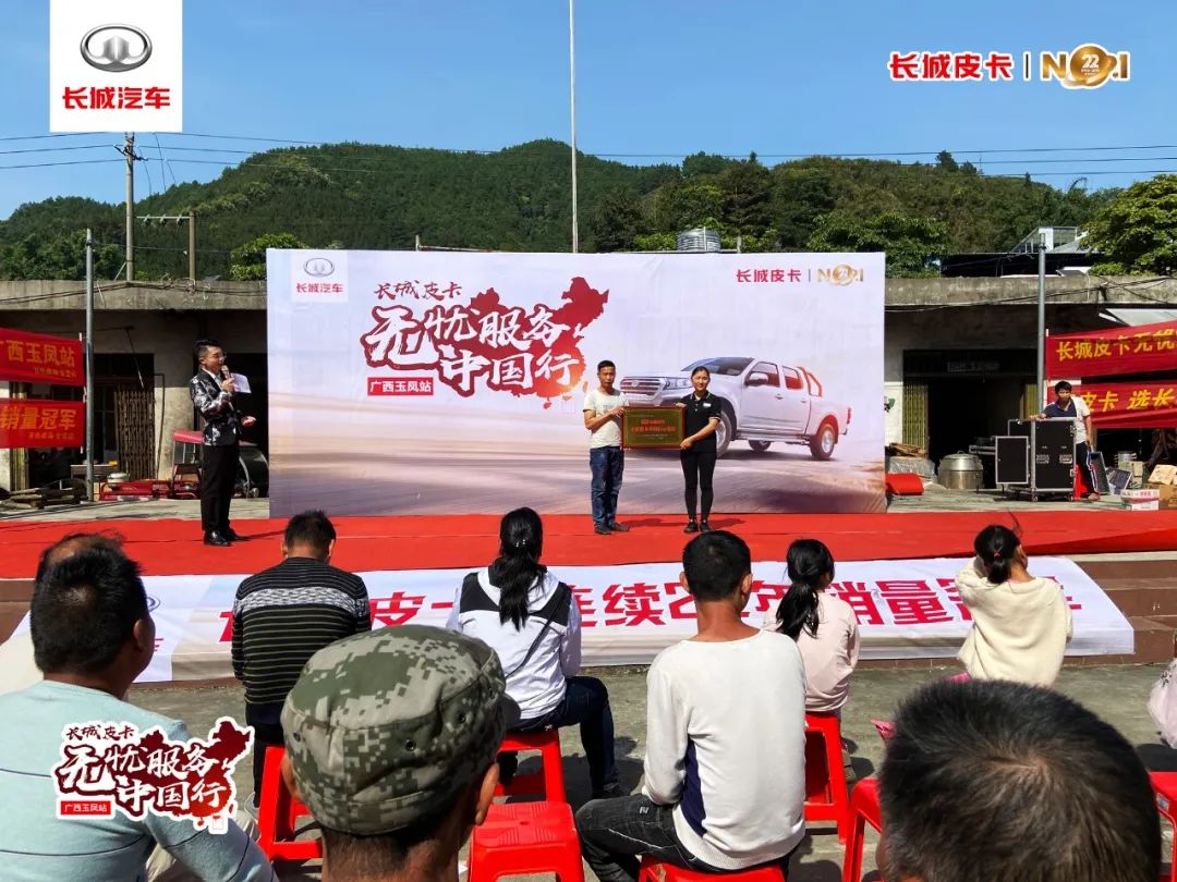10月24日,“長(zhǎng)城皮卡無(wú)憂(yōu)服務(wù)中國(guó)行”深入廣西百色田陽(yáng)區(qū)玉鳳鎮(zhèn),百色區(qū)域?qū)俚诙䝼(gè)長(zhǎng)城皮卡無(wú)憂(yōu)服務(wù)示范區(qū)——玉鳳示范區(qū)正式成立,繼續(xù)用實(shí)際行動(dòng)為當(dāng)?shù)剀?chē)主提供選車(chē)、購(gòu)車(chē)、維修保養(yǎng)全程無(wú)憂(yōu)的銷(xiāo)售和售后服務(wù),打造專(zhuān)屬消費(fèi)者的服務(wù)IP,讓當(dāng)?shù)匦吕宪?chē)主享受更便捷、更省心、更實(shí)惠的專(zhuān)屬服務(wù)。而皮實(shí)耐用的長(zhǎng)城皮卡,已成為當(dāng)?shù)乩习傩盏膭?chuàng)富神車(chē)。 “無(wú)憂(yōu)服務(wù)”已然成為長(zhǎng)城皮卡的專(zhuān)屬服務(wù)品牌。在皮卡市場(chǎng)持續(xù)擴(kuò)張的趨勢(shì)下,長(zhǎng)城皮卡重磅打造“長(zhǎng)城皮卡無(wú)憂(yōu)服務(wù)中國(guó)行”系列活動(dòng),建立“長(zhǎng)城皮卡無(wú)憂(yōu)服務(wù)示范區(qū)”,真正解決車(chē)主的后顧之憂(yōu),為行業(yè)的發(fā)展提供助力和引導(dǎo),推動(dòng)行業(yè)實(shí)現(xiàn)服務(wù)層面的全面升級(jí)和深化。 回饋用戶(hù),長(zhǎng)城皮卡讓好口碑再上臺(tái)階 一輛好皮卡,一定是能幫助用戶(hù)賺錢(qián)的皮卡。那么“長(zhǎng)城皮卡無(wú)憂(yōu)服務(wù)示范區(qū)"的成功落戶(hù),能為當(dāng)?shù)赜脩?hù)帶來(lái)什么呢? 長(zhǎng)城皮卡無(wú)憂(yōu)服務(wù)中國(guó)行,旨在解決這些山區(qū)和鄉(xiāng)鎮(zhèn)中維修服務(wù)的不便捷性,通過(guò)長(zhǎng)城皮卡無(wú)憂(yōu)服務(wù)示范區(qū)的落戶(hù),為節(jié)約用戶(hù)維修保養(yǎng)的成本和時(shí)間,大大的提高老用戶(hù)的后服務(wù)滿(mǎn)意度。 長(zhǎng)城皮卡通過(guò)一系列深入村寨、深入客戶(hù)聚集地的服務(wù)活動(dòng),實(shí)現(xiàn)服務(wù)持續(xù)升級(jí),同時(shí),還對(duì)忠誠(chéng)老用戶(hù)的家鄉(xiāng)進(jìn)行愛(ài)心公益善行,將“無(wú)憂(yōu)服務(wù)中國(guó)行”打造成有品牌溫度的服務(wù)IP。 為助力當(dāng)?shù)剞r(nóng)產(chǎn)品產(chǎn)業(yè)發(fā)展,讓廣大車(chē)主更快更好地開(kāi)展生意經(jīng)營(yíng),助力創(chuàng)業(yè)致富,活動(dòng)當(dāng)天,長(zhǎng)城皮卡百色森海專(zhuān)營(yíng)店還宣布推出了針對(duì)當(dāng)?shù)赜脩?hù)的專(zhuān)項(xiàng)專(zhuān)屬回饋政策: