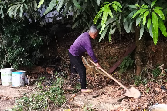 每天早上謝月娥都起來掃地、掃門口、掃公路!拔矣X得掃了舒服,走過去舒服,干凈。如果個(gè)個(gè)都這么做,搞得干凈就好了!敝x月娥說。