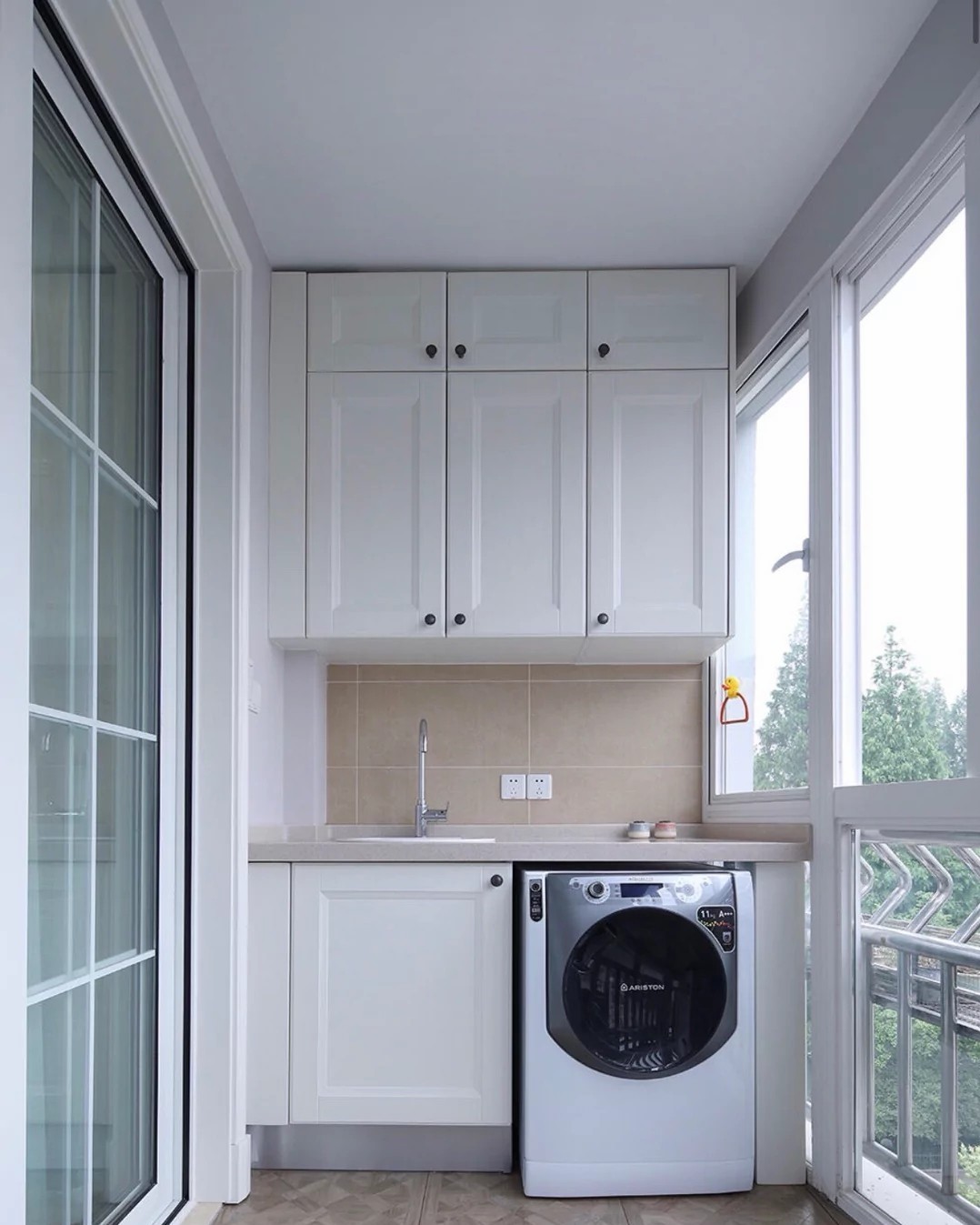 此時(shí)將成品洗衣柜往陽臺(tái)一放,就已經(jīng)達(dá)到陽臺(tái)使用要求了,其它的就不管了。這樣不僅白白浪費(fèi)了陽臺(tái)價(jià)值十多萬的空間,同時(shí)在使用上也并沒有達(dá)到讓生活更加方便。