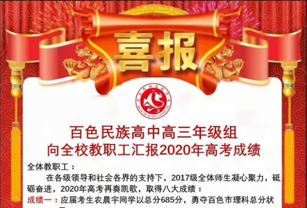 2020年百色市三大高中高考喜報(bào)!百色高中、民族、祈福均創(chuàng)歷史
